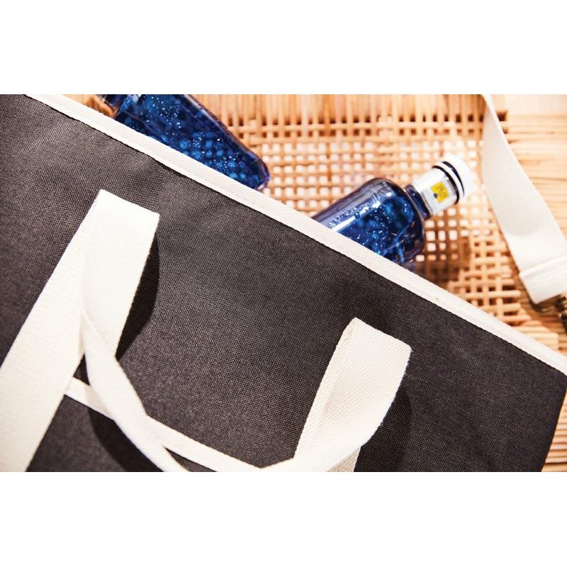 Стильная сумка-холодильник с контрастными деталями идеальна для пикника. На 50% изготовлена из rPET, переработанных пластиковых бутылок. Снаружи есть дополнительный карман для важных мелочей. Сумку легко чистить и сушить после использования. Регулируемый ремень и двойная ручка позволяют носить сумку-холодильник как на плече, так и в руках.