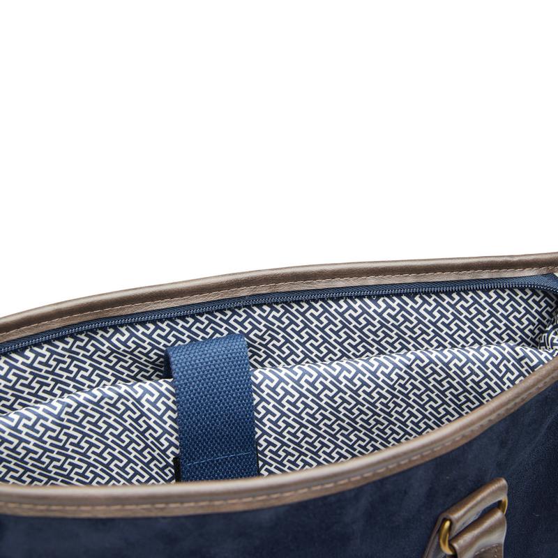 Сумка для ноутбука из коллекции Hunton идеально подойдет для офисного дресс-кода. Деловая и достаточно строгая, она отличается отделкой в ретро-стиле и мягким покрытием, имитирующим замшу. Уверенности в себе добавит незаметная, но важная деталь: качественная, красивая и приятная на ощупь подкладка, визитная карточка VINGA. Внутри сумки два отделения, одно из которых предназначено для ноутбука диагональю не больше 17’’. Однако стоит обратить внимание на толщину ноутбука: к примеру, тонкий MacBook без труда поместится в сумку. А габаритный и объемный MSI с диагональю 17'' оказался для нее слишком большим. Мягкая подкладка защитит технику от повреждений. Во второе отделение поместятся документы, ежедневник и необходимые мелочи. В комплект входит удобный плечевой ремень, который при необходимости можно снять.