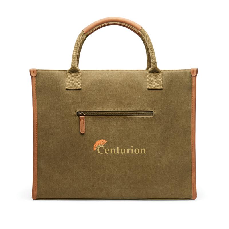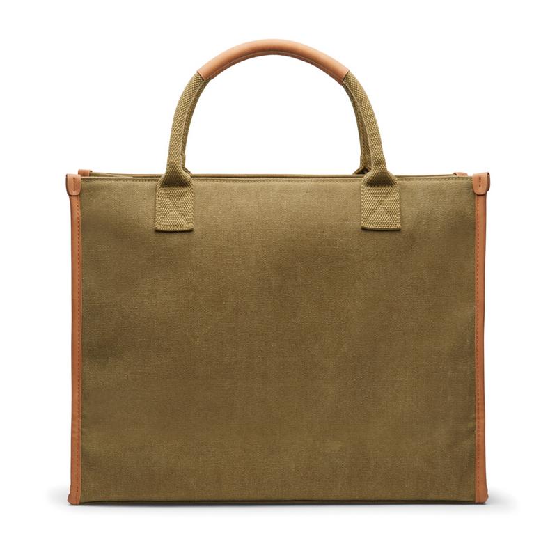 Деловая сумка-тоут отлично подойдет для рабочих будней или поездок. Стильная и вместительная, она отличается контрастной отделкой — стильным акцентом, привлекающим внимание. В сумке есть отделение с мягкой подкладкой — для ноутбука или планшета диаметром до 13’’. Основное отделение просторное, в него поместятся документы, зарядные устройства, кошелек и другие необходимые вещи. Снаружи задней стенки есть небольшой кармашек на молнии для ценных мелочей. У сумки короткие ручки с имитирующей кожу отделкой. Сумка изготовлена из переработанного канваса: на 70% он состоит из переработанного хлопка, а на 30% — из переработанного полиэстера. Все переработанные материалы имеют сертификат RCS, который гарантирует полный контроль цепочки поставок переработанных материалов.