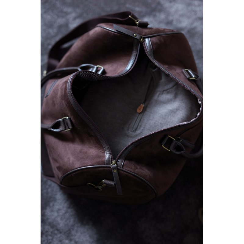 Это вместительная дорожная сумка идеально подойдет для коротких поездок или экскурсий. Выполнена в неподвластном времени классическом дизайне из полиэстера с имитацией замши. Украшена латунными деталями. Прекрасный спутник для тех, кто всегда в пути.