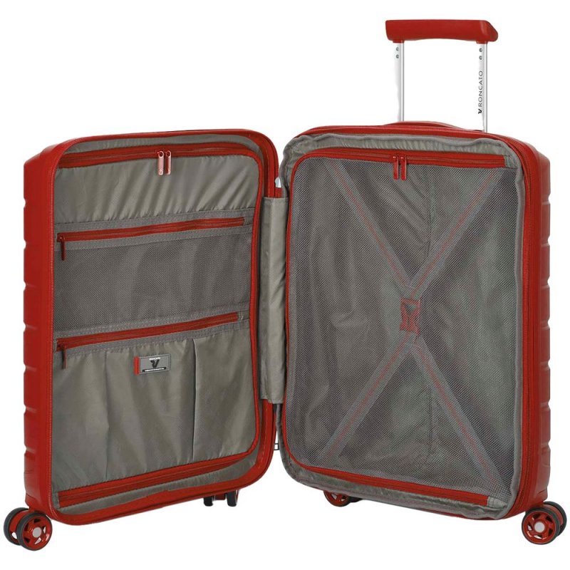 - Чемодан с 2 отделениями: одно отделение с сетчатым разделителем и прижимными ремнями, а второе оснащено перегородкой на молнии с двумя карманами