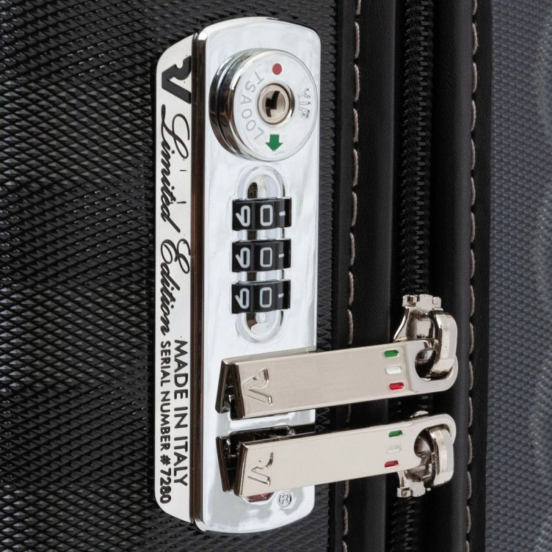 Наружные и внутренние элементы — ручки, фурнитура, обрамление молний, адресная бирка — выполнены из натуральной кожи, благодаря которой чемодан приобретает по-настоящему изысканный вид.