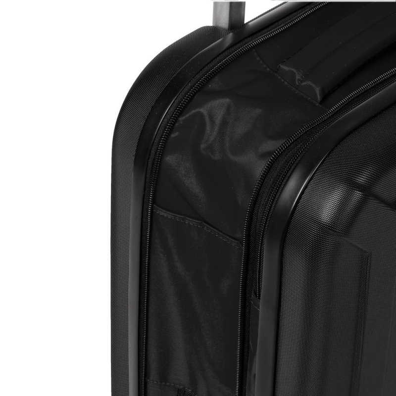 Для изготовления корпуса использован ударопрочный АБС-пластик последнего поколения, а расширение чемодана сделано из очень плотной водонепроницаемой ткани, которая идеально подходит для эффектных принтов больших размеров.