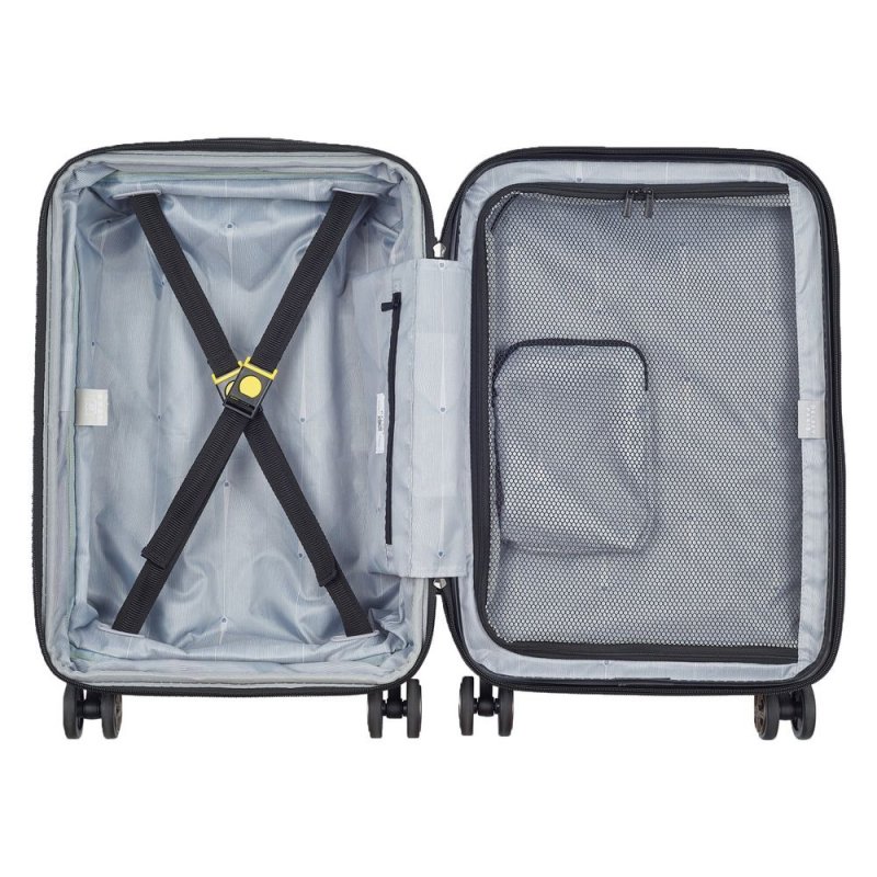 - Чемодан с 2 отделениями: одно из них с фиксирующими ремнями, второе — с разделителем и карманом-органайзером на молнии