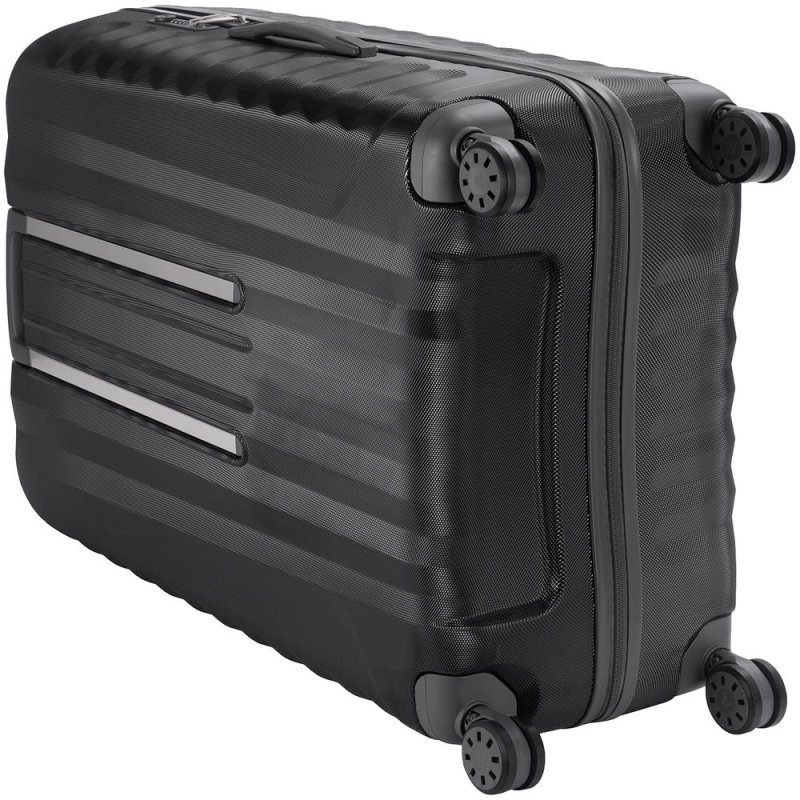 Корпус изготовлен из ударостойкого поликарбоната с покрытием, имитирующим алмазные пики — такая технология препятствует появлению царапин и делает чемодан еще более прочным и выносливым.