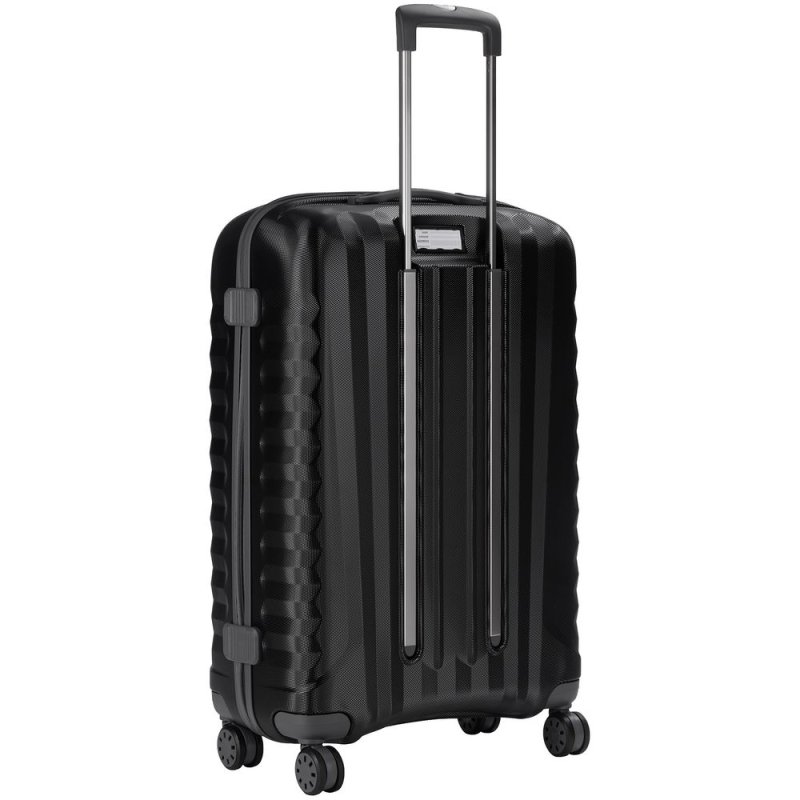 Корпус изготовлен из ударостойкого поликарбоната с покрытием, имитирующим алмазные пики — такая технология препятствует появлению царапин и делает чемодан еще более прочным и выносливым.