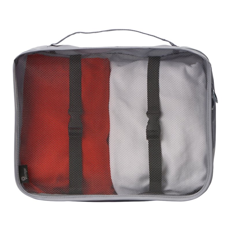 Набор чехлов для одежды от бренда Voyager, выполненный из прочного качественного полиэстера 290D, организует ваши вещи в чемодане во время путешествия и поможет разместить их комфортно в шкафу. В отличие от пакетов чехлы многоразовые, что наверняка понравится защитникам природы, их легко стирать, сушить и хранить. Набор состоит из восьми чехлов, упакованных в один большой с сетчатой стенкой. Этот чехол оборудован ручкой для переноски и кнопками на задней стенке, которые позволяют компактно сложить изделие вдвое в зафиксированном положении для хранения.