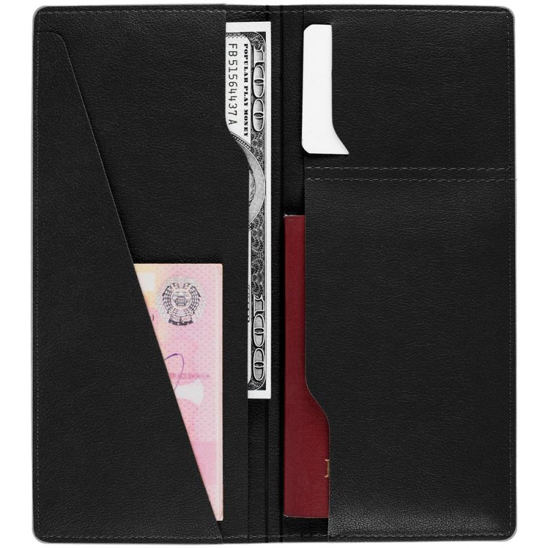 Имеет 5 отделений: для билетов, паспорта, визиток или кредитных карт.