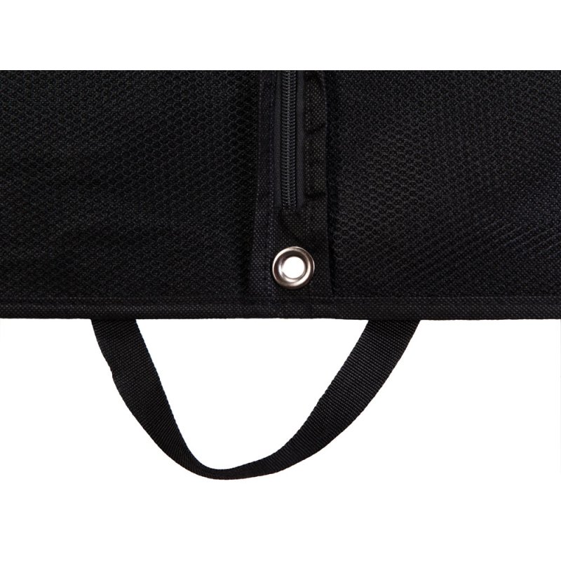 Дорожный чехол из нетканого материала для одежды, который помогает перевозить одежду чистой и без складок. В сложенном виде напоминает форматом портфель, легко переносится с места на место благодаря удобным ручкам. Чехол имеет отверстие для крючка вешалки, на которую вы можете повесить одежду перед тем, как поместить ее внутрь.