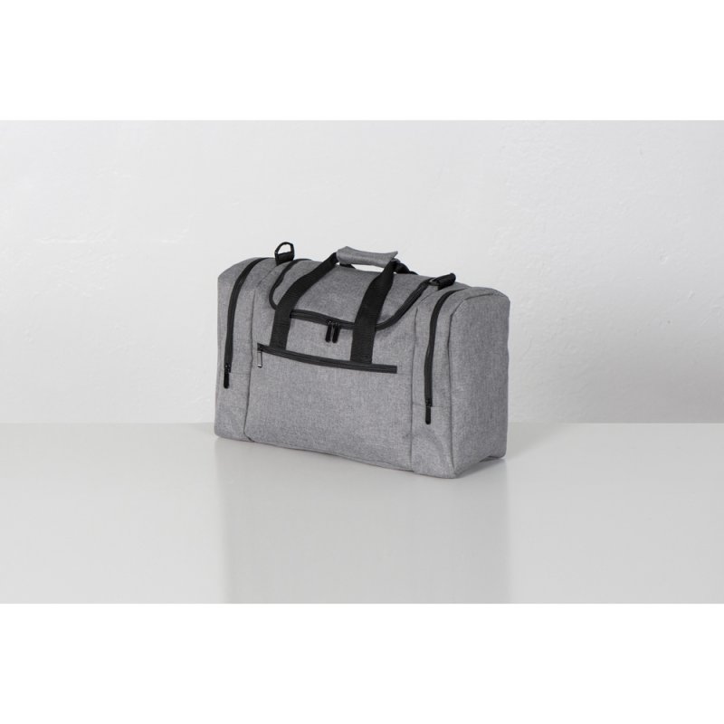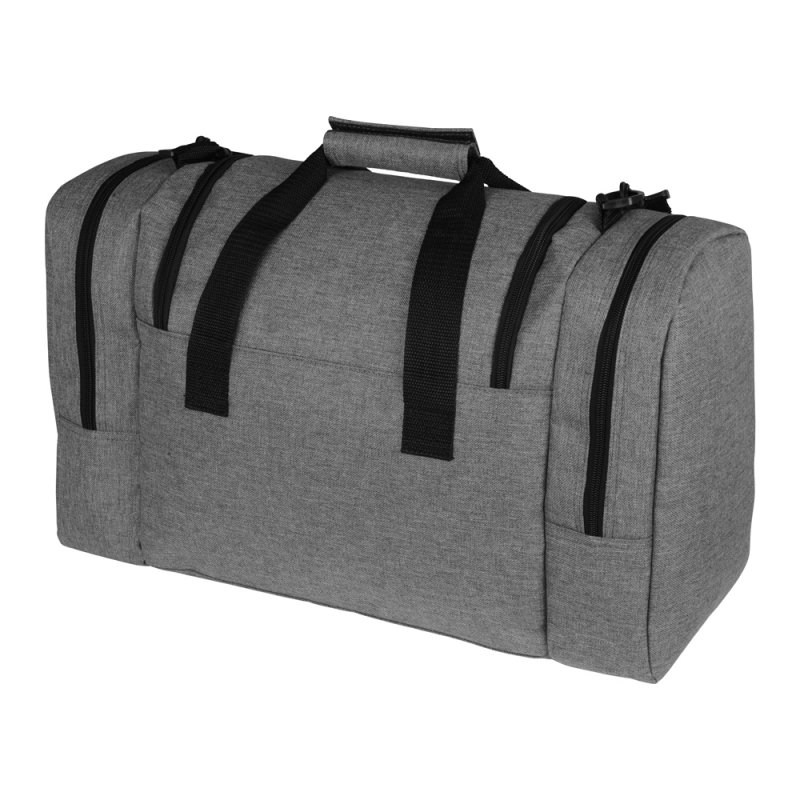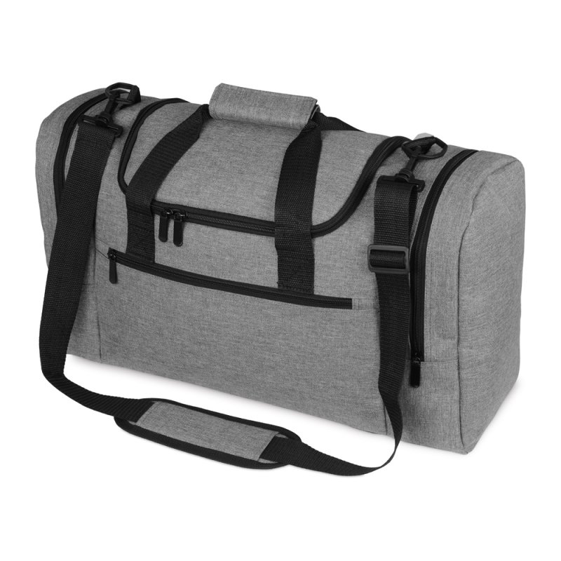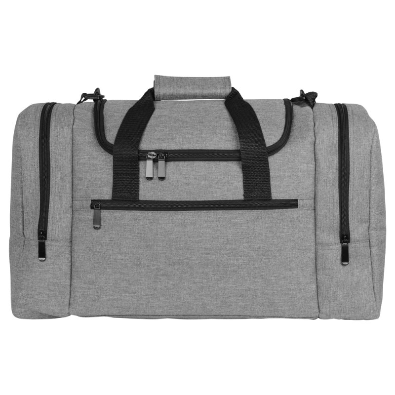 Удобная и прочная сумка для путешествий или походов в спортзал. Два вместительных больших кармана на молниях по бокам и один спереди. Сумка сделана из плотной долговечной ткани. Ремень на плечо отстегивается и регулируется по длине.