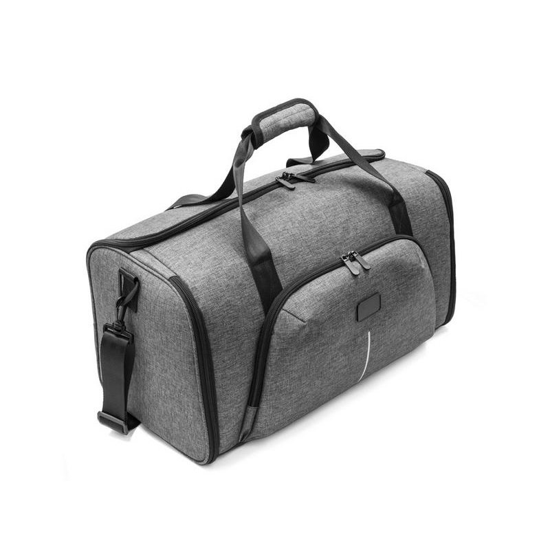Вместительная и удобная универсальная сумка из плотного водостойкого материала, подходящая как для занятий спортом, так и для путешествий, создана для умного хранения вещей благодаря своей складной конструкции. Встроенный чехол для одежды можно использовать как портплед. Ремень для крепления к чемодану удобен в поездках. Отстегивающаяся регулируемая лямка на плечо, дополнительный наружный карман на молнии и 2 внутренних кармана по бокам добавляют дополнительное удобство при использовании. Светоотражающий элемент на кармане впереди служит для большей защиты в темное время суток. В комплекте съемный металлический шильд под нанесение вашего логотипа.
