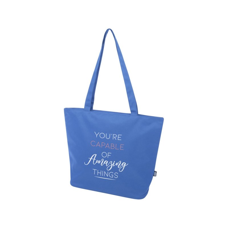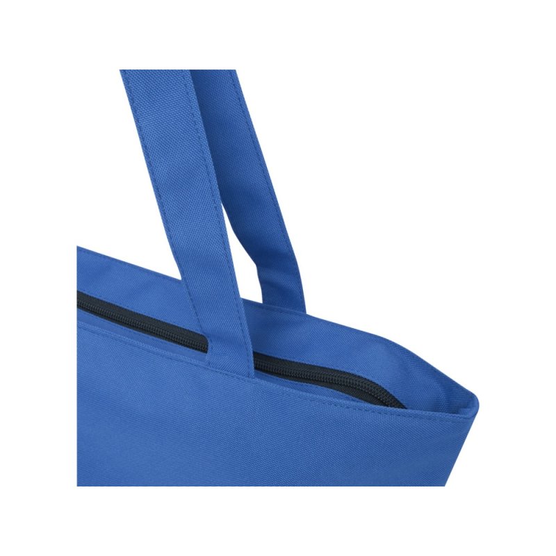 Изготовленная из водоотталкивающего переработанного PET-пластика 600D, эко-сумка на молнии Panama из переработанных материалов, сертифицированных GRS, является идеальной и экологичной многофункциональной сумкой для похода на мероприятие, на пляж или в магазин за продуктами. У изделия имеется основное отделение на молнии и внутренний карман на молнии, достаточно большой, чтобы вместить телефон и другие ценные вещи. Ручки длиной 34 см позволяют легко носить эко-сумку через плечо. Прочность до 10 кг. Не содержит ПВХ. 600DGRS certified recycled polyester.