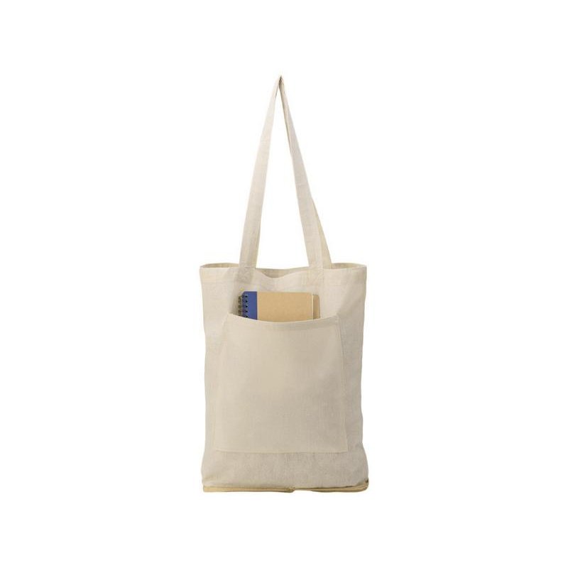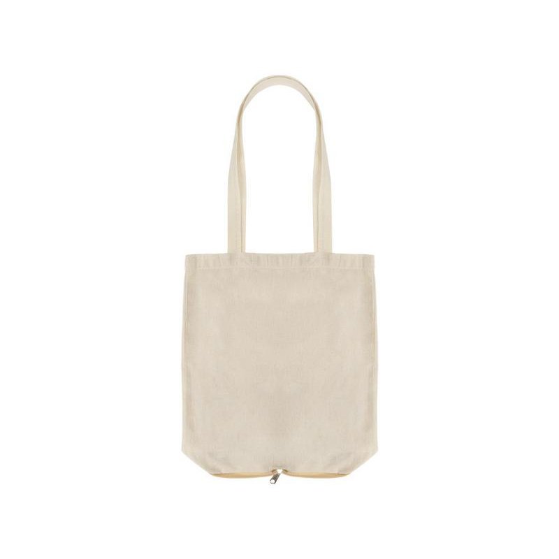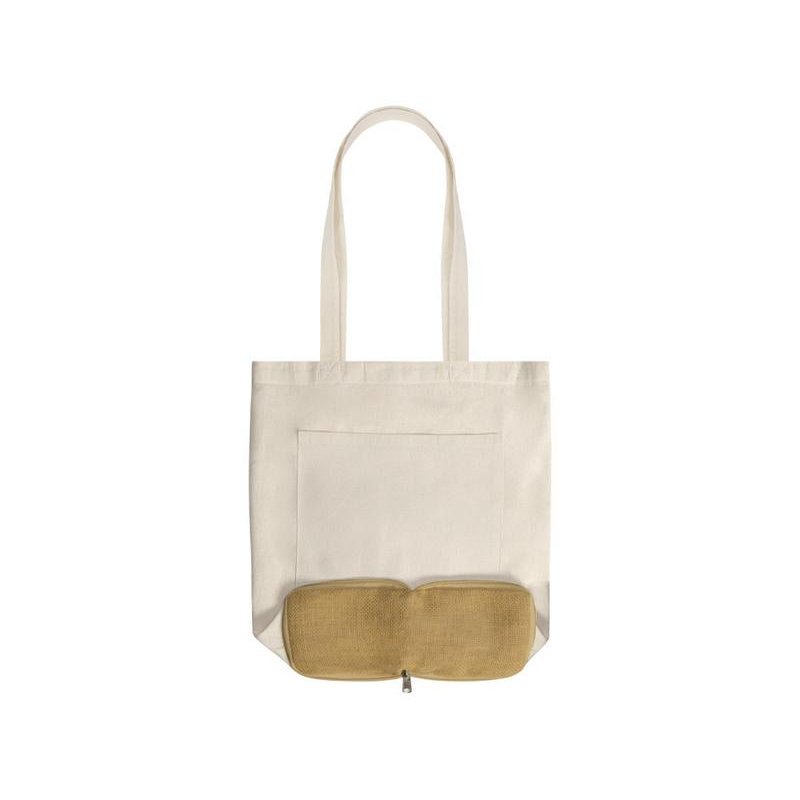 Складная сумка из хлопка с дном из джута. Снаружи большой вместительный карман. В сложенном виде закрывается на молнию.