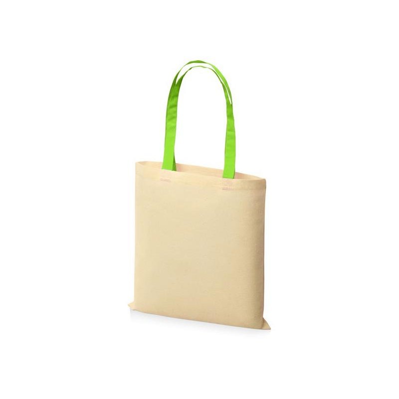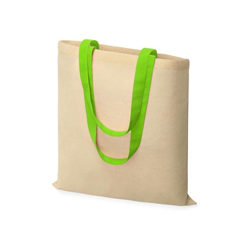 Хлопковая сумка c цветными ручками удобна для покупок благодаря легкости и вместительности. Высота ручек 29 см.