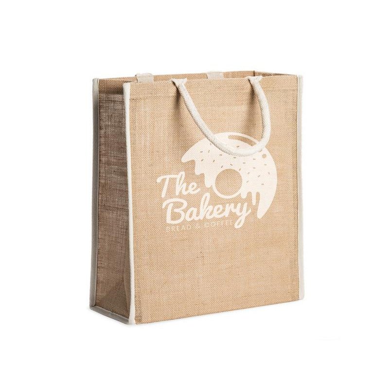 Сумка из натурального джута с отделкой и усиленными хлопковыми ручками.