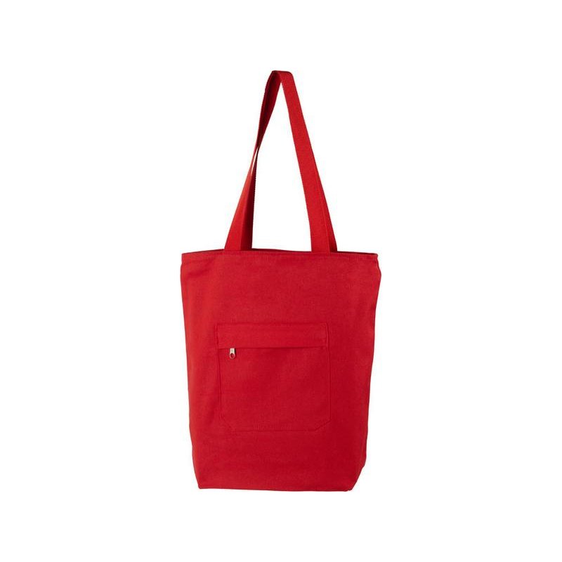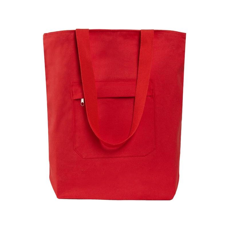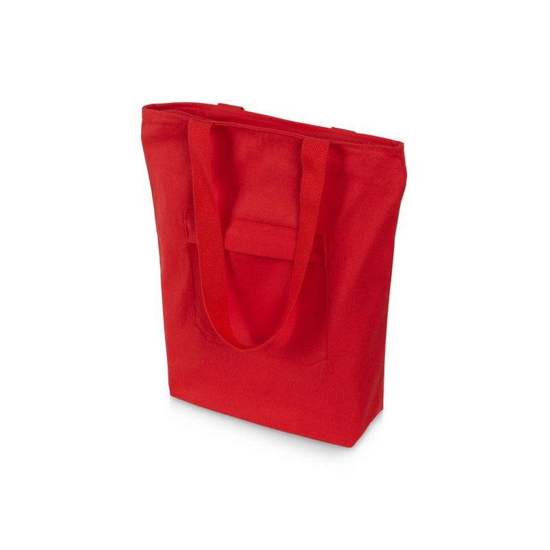 Преимущество этой сумки в наличии застежки молнии на основном отделении - ее содержимое остается закрытым. Донная складка увеличивает вместимость. Снаружи расположен карман на молнии. Парусиновые ручки в тон сумки.