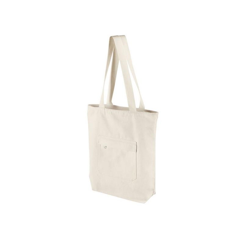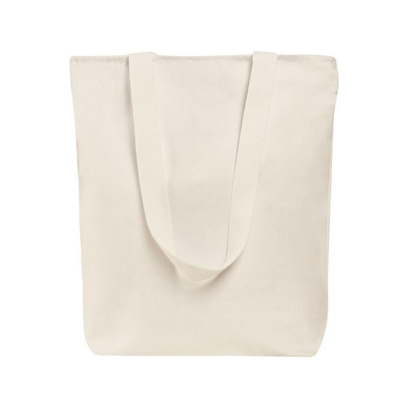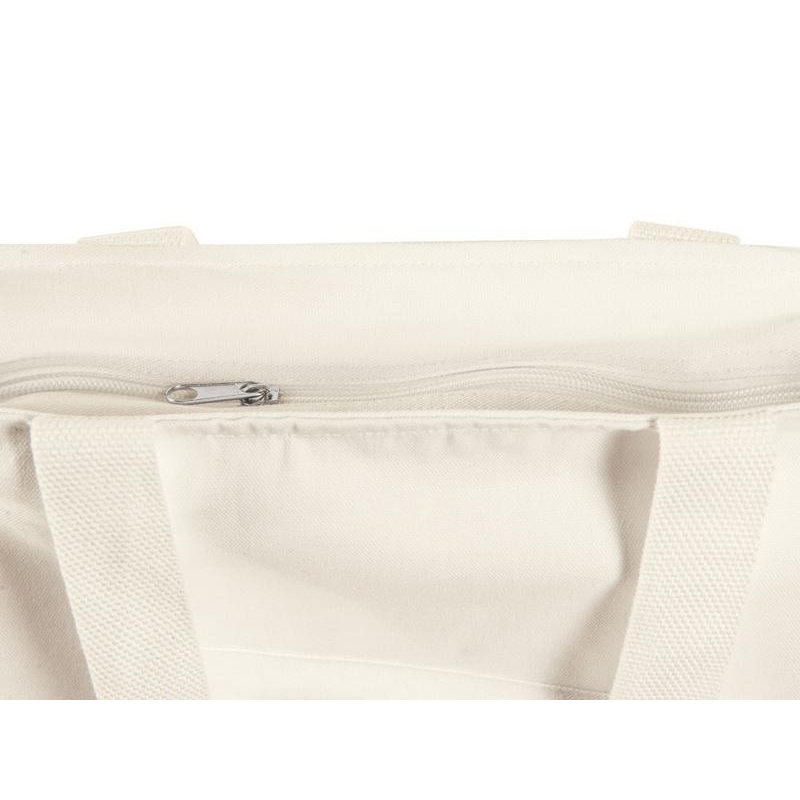 Преимущество этой сумки в наличии застежки молнии на основном отделении - ее содержимое остается закрытым. Донная складка увеличивает вместимость. Снаружи расположен карман на молнии. Парусиновые ручки в тон сумки.