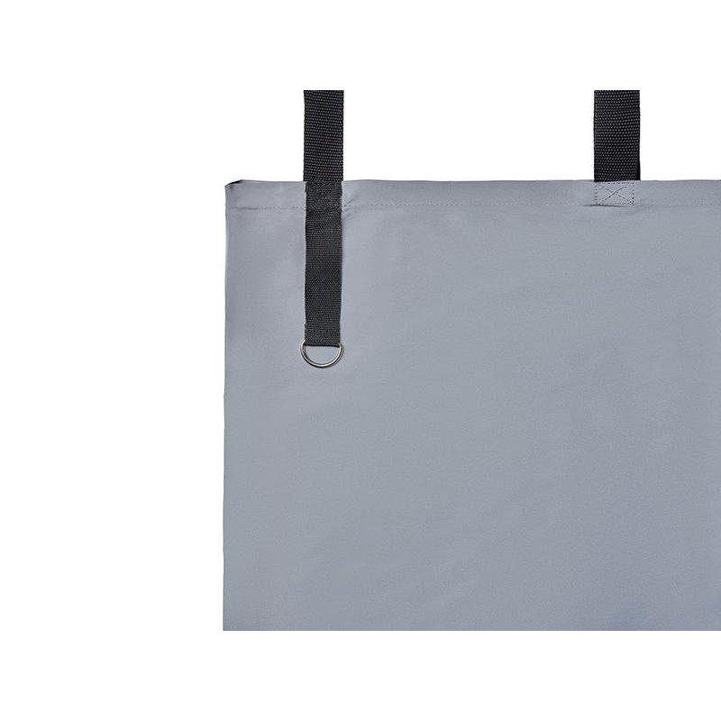 Сумка для покупок из светоотражающей ткани обеспечивает дополнительную защиту в темное время суток. Прочные ручки длиной 68 см. Металлическое д-кольцо на хлястике предусмотрено для крепления ремувок с вашим логотипом.