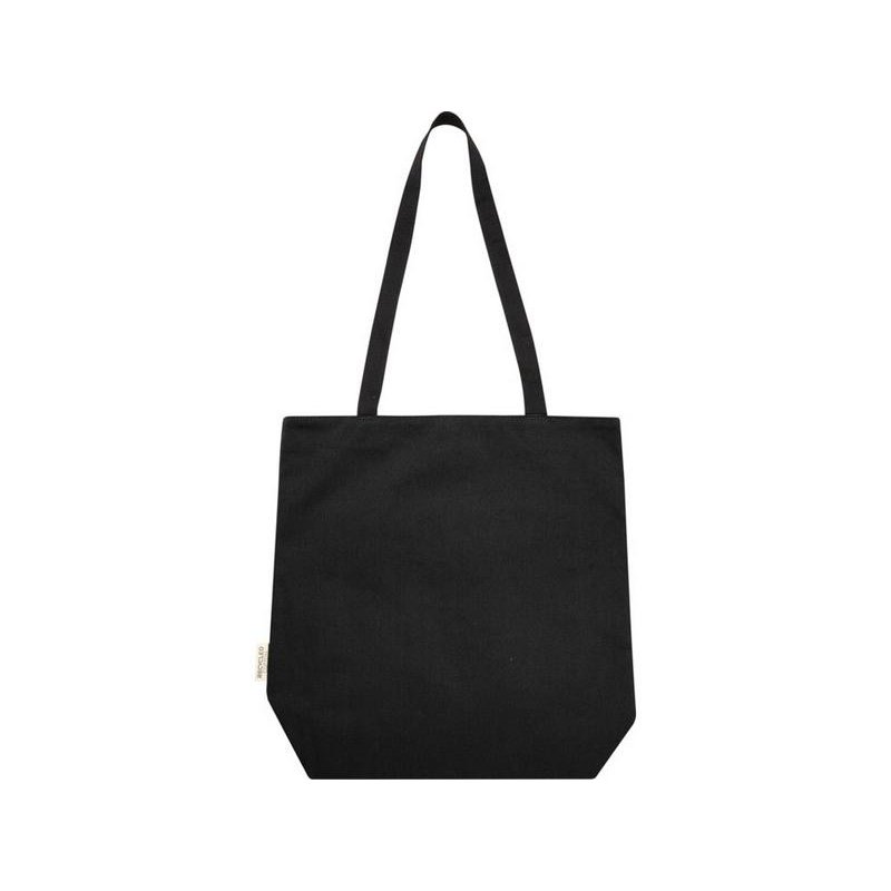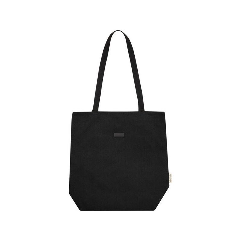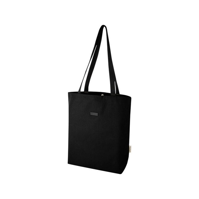 Эко-сумка изготовлена из переработанного холста, сертифицированного по стандарту GRS, и имеет подкладку из переработанного ПЭТ-пластика, сертифицированного по стандарту GRS. Универсальная эко-сумка имеет мягкое отделение для ноутбука с диагональю 15 дюймов и два карманных рукава внутри для телефона, кошелька или аксессуаров, а также удобную застежку на кнопке для открытия и удобные плетеные ручки из хлопка. Декоративная металлическая пластина может придать логотипу сияние благодаря утонченному матовому покрытию.