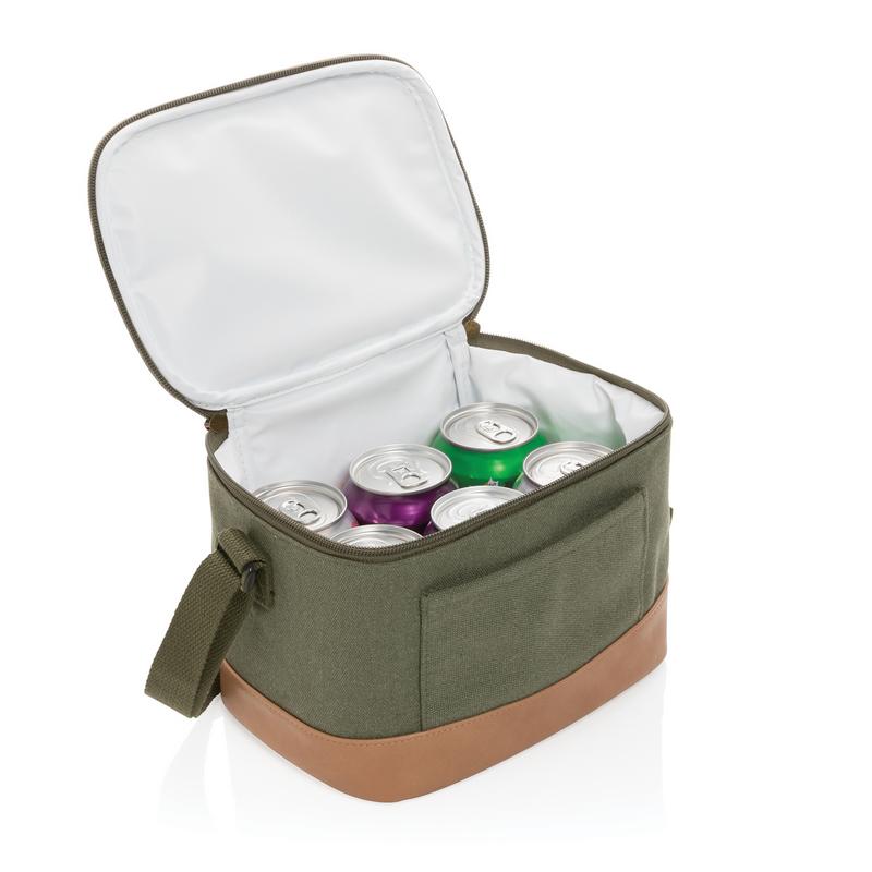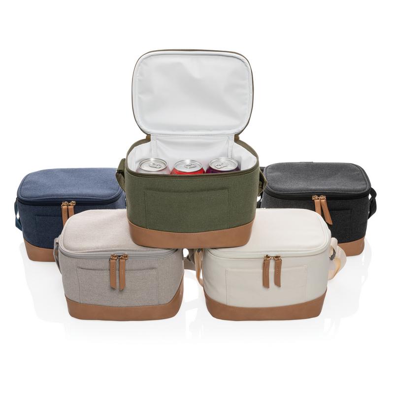 Здоровый перекус всегда под рукой с этой компактной сумкой-холодильником Impact. Вмещает до 6 алюминиевых банок. Сделана из переработанного канваса плотностью 16 унций (≈ 450 г/м2), украшена стильными деталями из полиуретана. Индикатор AWARE™ гарантирует подлинность переработанных материалов. При производстве каждой сумки-холодильника мы сэкономили 506,2 л воды. 2% с продаж всех изделий, содержащих индикаторные частицы AWARE™, будут перечислены в поддержку всемирной благотворительной организации Water.org. Состав ткани: 60% переработанный хлопок и 40% переработанный полиэстер. Подкладка: PEVA.