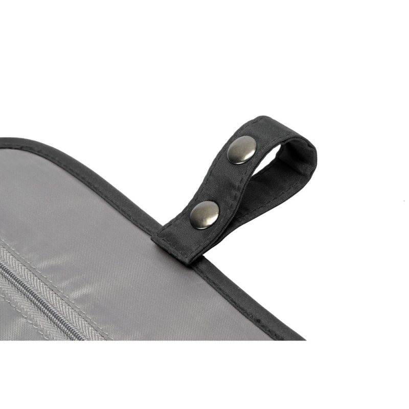 Органайзер состоит из карманов на молнии, карманов-сеток, прозрачного моющегося кармана на молнии, в который можно поместить флаконы с жидкостью — даже если емкость разгерметизируется, карман легко очистить под струей воды.