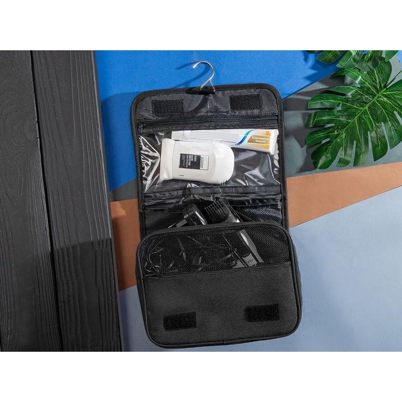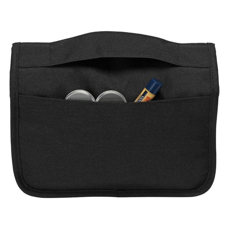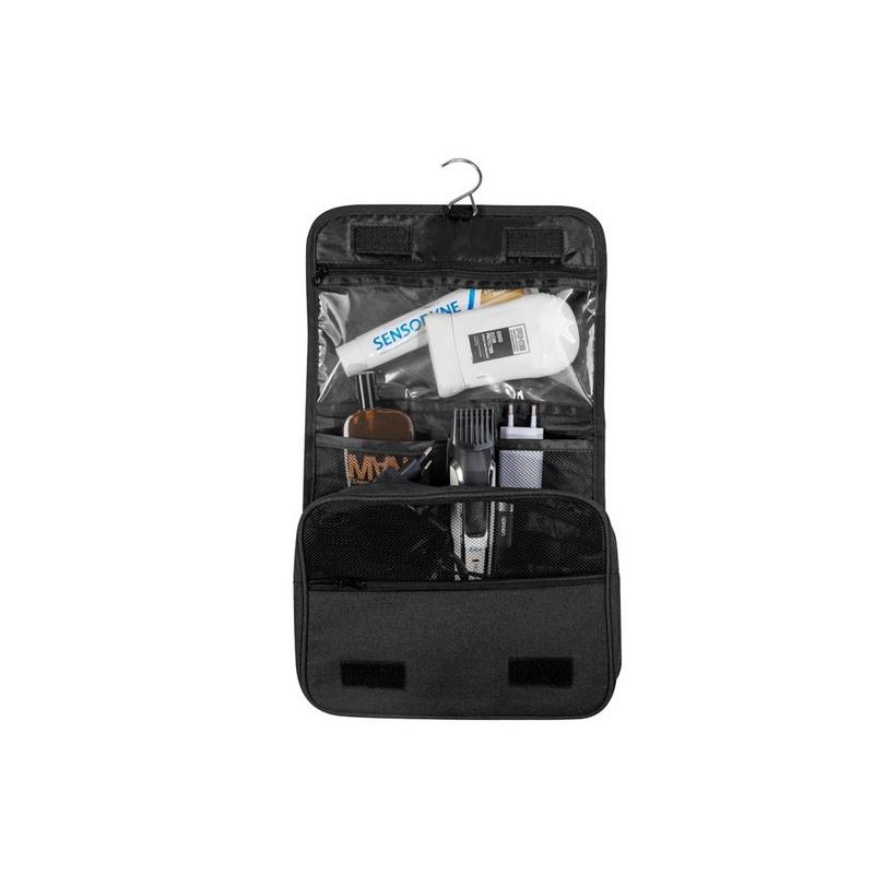 Несессер Planar оснащен металлическим крючком для подвешивания, который в сложенном виде убирается внутрь и не будет вам мешать. Для переноски несессер имеет ручку снаружи, а еще вы найдете плоский вместительный карман на его задней стороне. Клапан несессера закрывается на липучки и имеет три кармана — большой на молнии из прозрачного материала, который легко моется, даже в случае, если флакон изнутри разгерметизировался, и два из сетки, куда можно положить необходимые мелочи и которые удобнее использовать в висящем виде.
