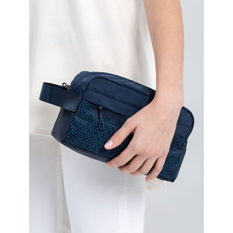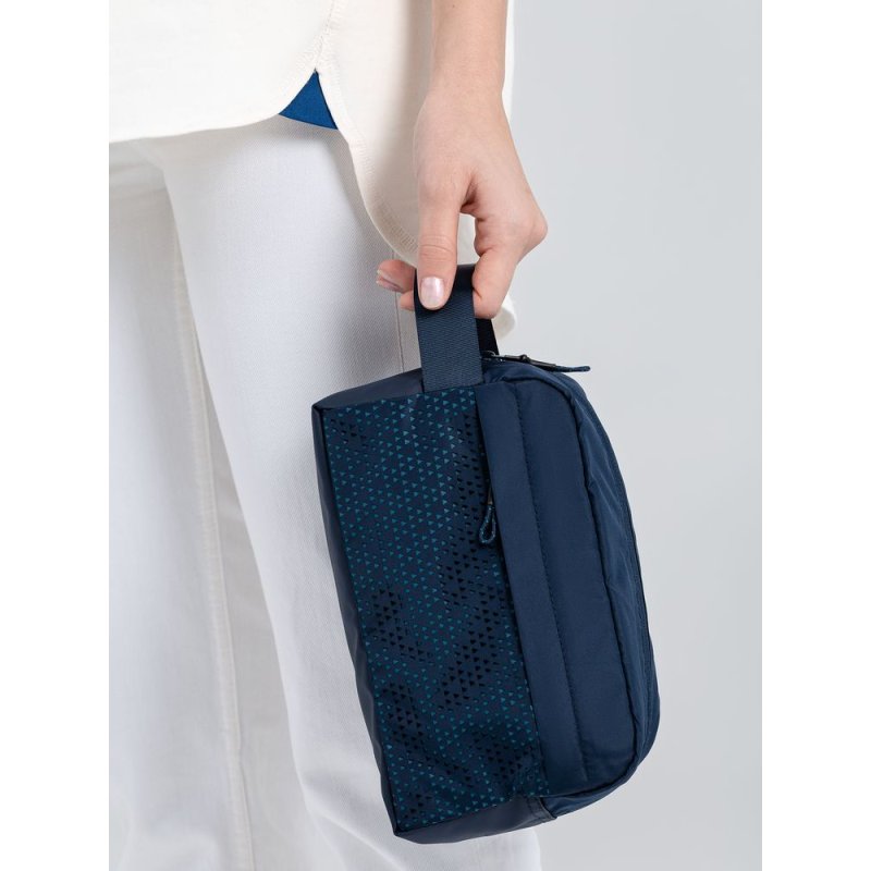 Цвет Outer Space лег в основу коллекции сумок Triangel, позволяя создать модное монохромное сочетание с изделиями Manevr темно-синего цвета. Изделия изготовлены из шелковистого полиэстера, в отделке использована лазерная перфорация паттерна.