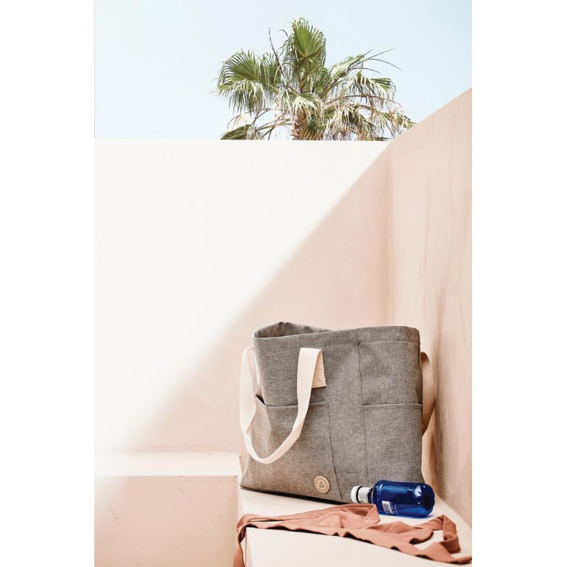 Может ли пляжный образ быть элегантным? Да — если дополнить его экологичной сумкой из серии Sortino! Ее размеры позволяют взять с собой все, что необходимо на отдыхе: от купальника до пледа и перекуса. Снаружи предусмотрены карманы для мелочей. Сумка изготовлена из переработанных пластиковых бутылок, а ее прочные ручки — из безопасного полиуретана. Благодаря контрастному цвету, ручки служат дополнительным стильным акцентом.