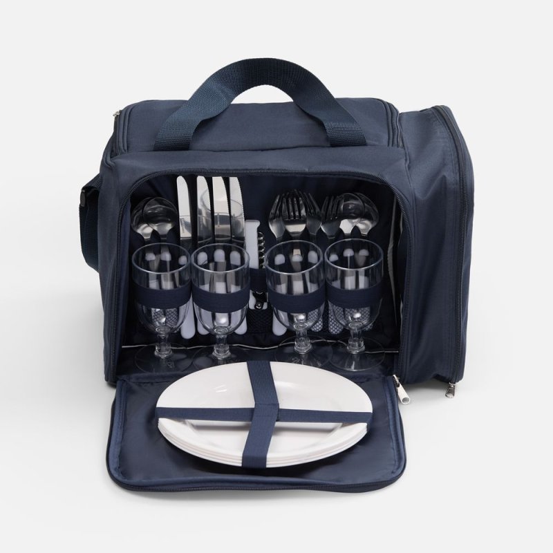 - Материал:термосумка - полиэстер, плотность 230 г/м², PEVA; тарелки и бокалы - полистирол; приборы - нержавеющая сталь, пластик