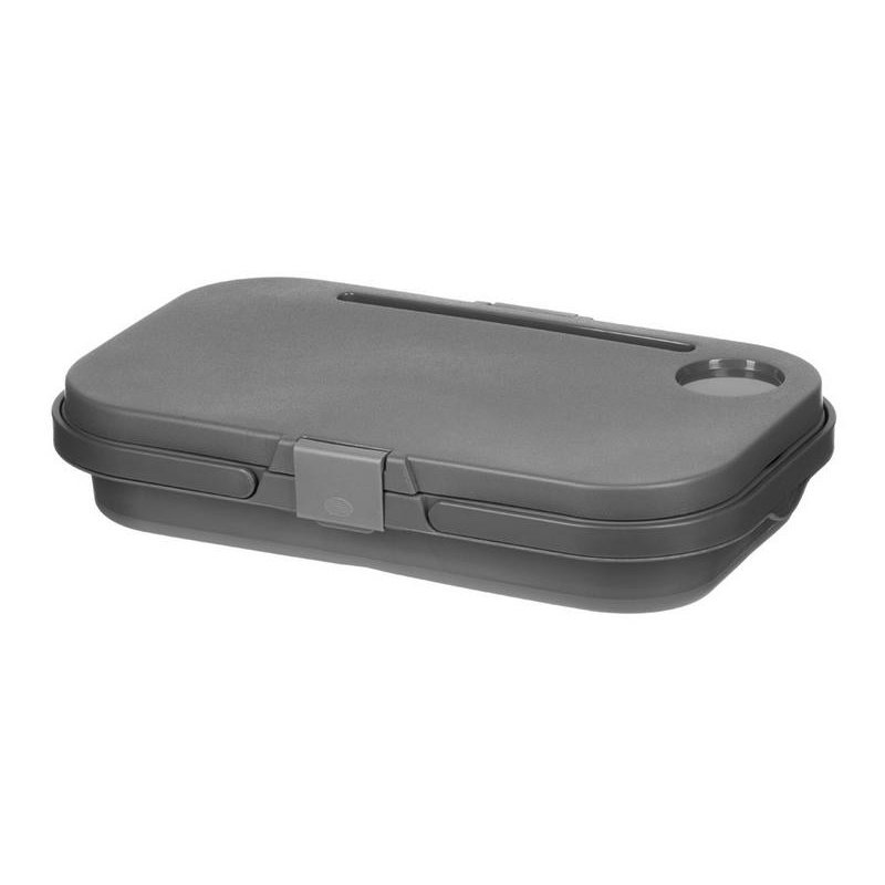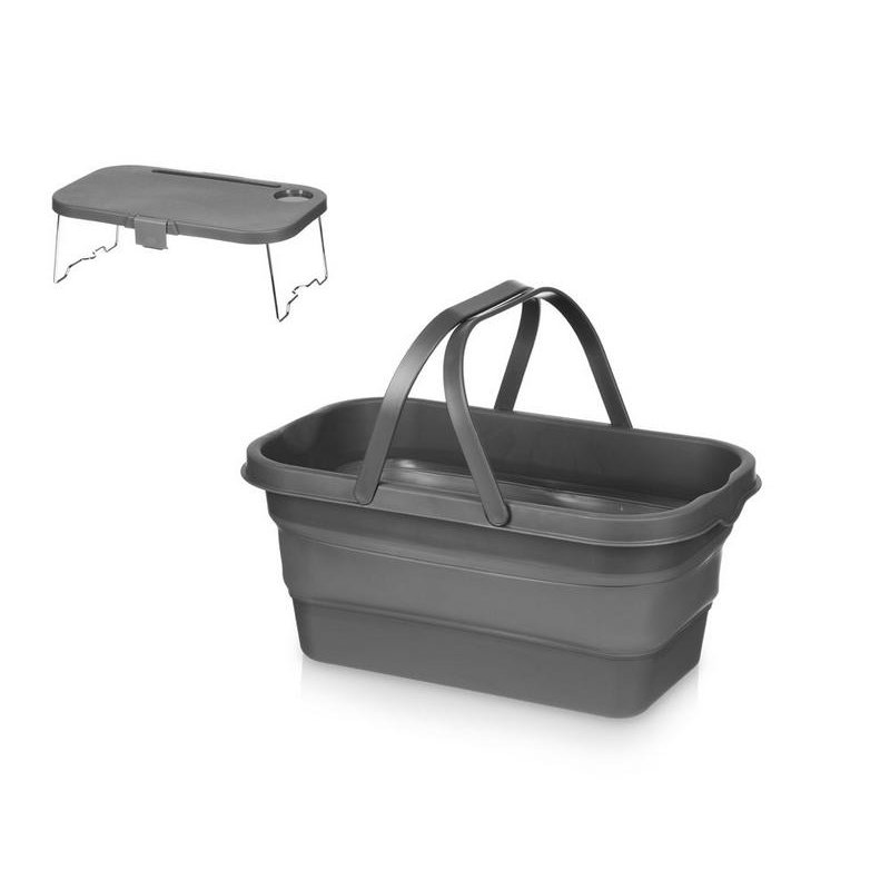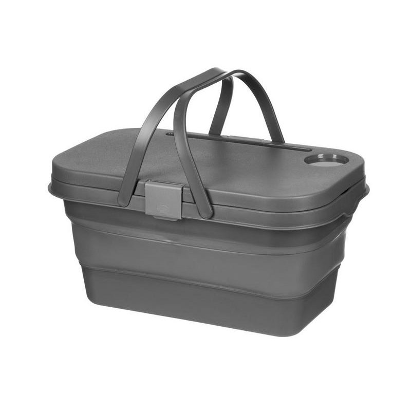 Крышка этой корзинки для пикника превращается в удобный столик буквально по щелчку пальцев: для этого нужно просто снять ее и разложить металлические ножки. На этом магия корзинки не заканчивается — силиконовый корпус складывается, что очень удобно, когда пикник закончен, и все содержимое съедено.