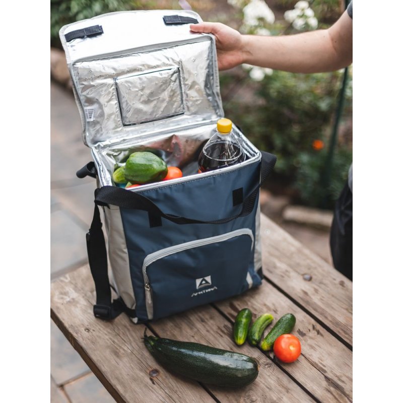 Классическая сумка-холодильник, с которой можно отправиться на пикник, на дачу или в дальнюю поездку. Эту модель отличает большой холодильный отсек и удобное окошко для быстрого доступа внутрь, благодаря которому увеличивается время сохранения продуктов холодными, ведь не надо лишний раз открывать крышку полностью.
