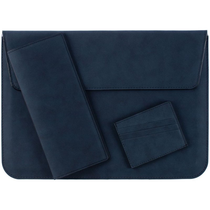 Чехол для ноутбука с диагональю до 13", выполнен из материала Nubuck, темно-синий ХХ, внутри серый велюр.