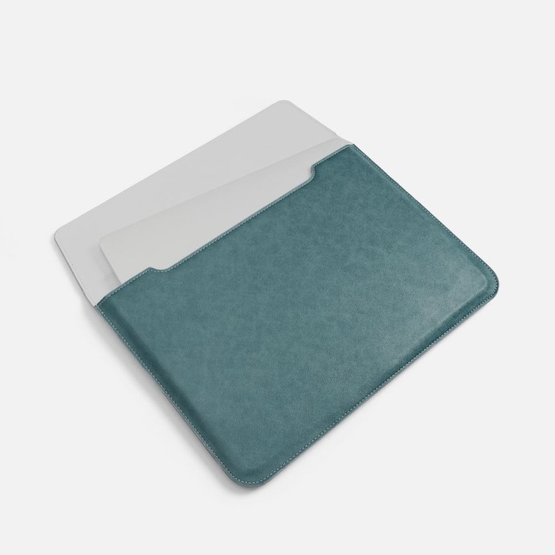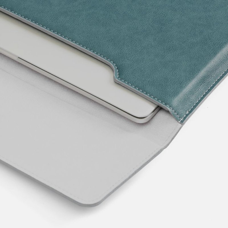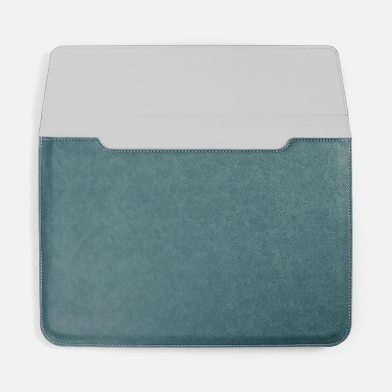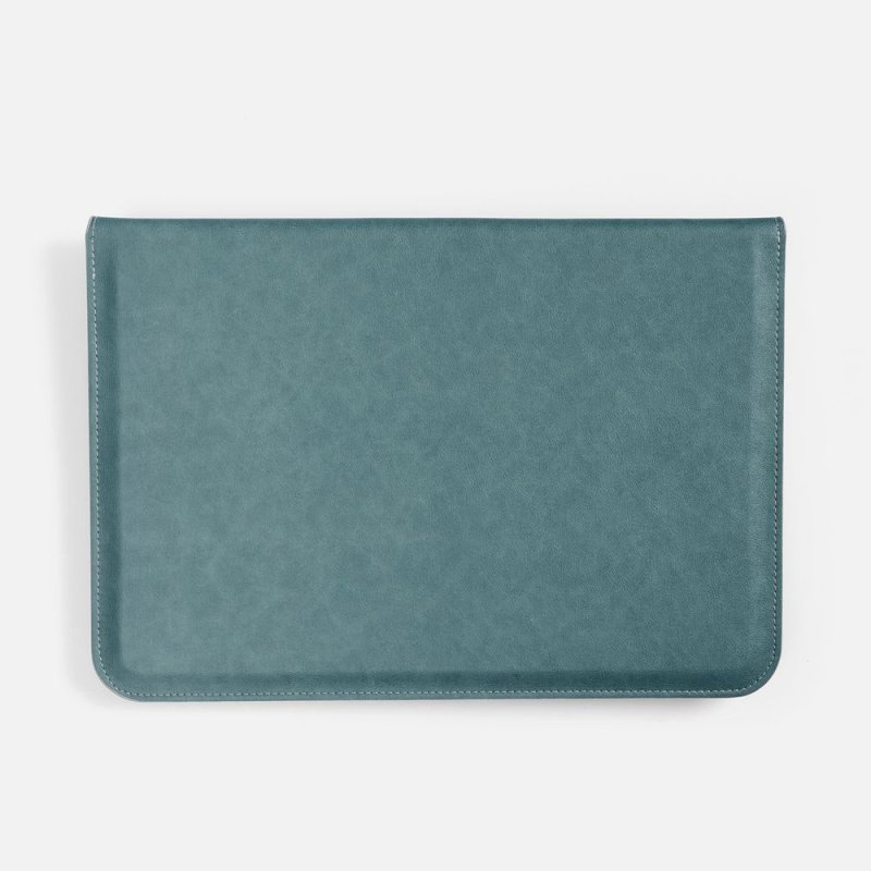Чехол для ноутбука с диагональю до 15,6" выполнен из материала Petrus, голубой JJ, дополнен окрашенным срезом края серого цвета.