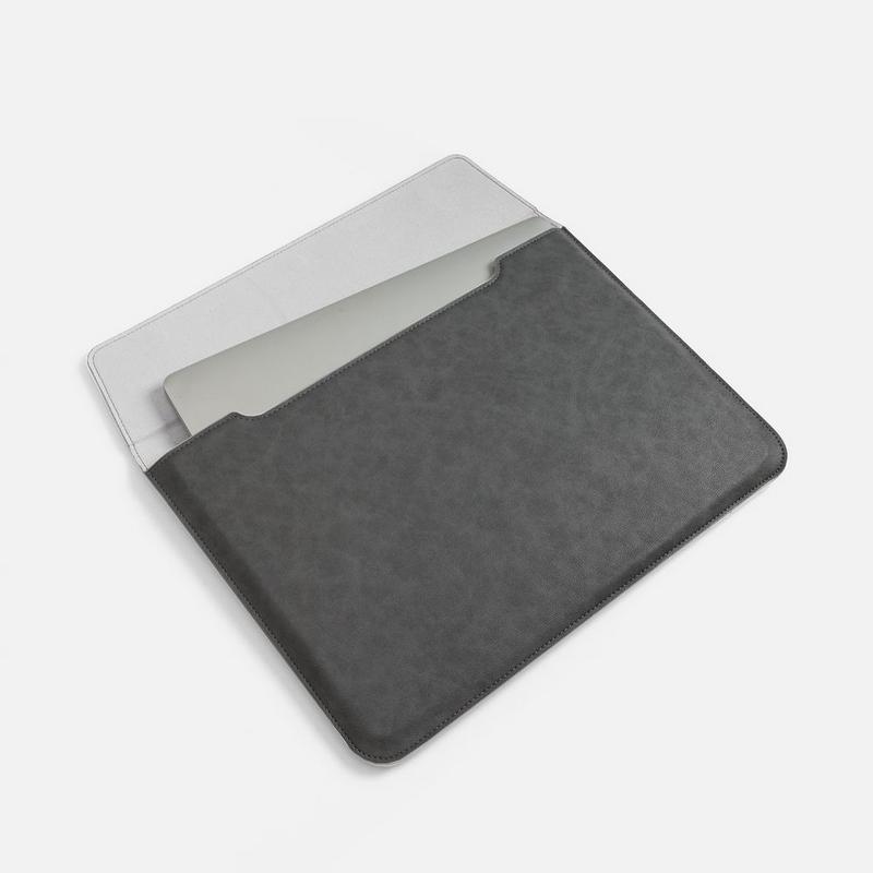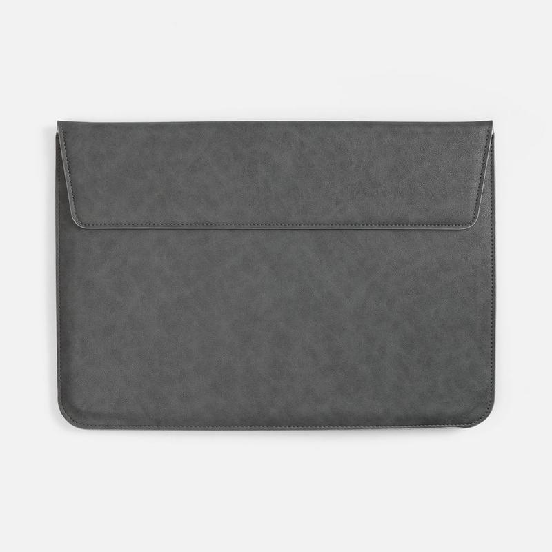 Чехол для ноутбука с диагональю до 15,6" выполнен из материала Petrus, серого цвета, дополнен окрашенным срезом края серого цвета.
