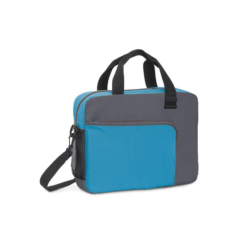 Многофункциональная сумка 600D с 2 боковыми сетчатыми карманами и передним карманом. В удлинение одной из ручек входят 2 ручки для ручек (не входят в комплект). Папка имеет регулируемый плечевой ремень из тесьмы. 390 x 300 x 80 мм. Вид нанесения, рекомендуемый поставщиком: трансфер.