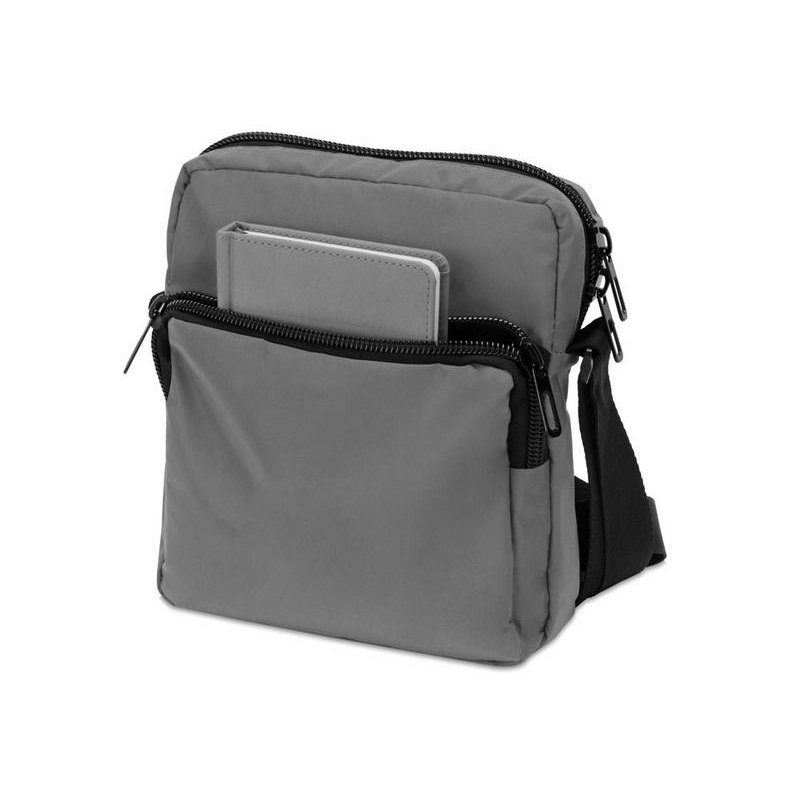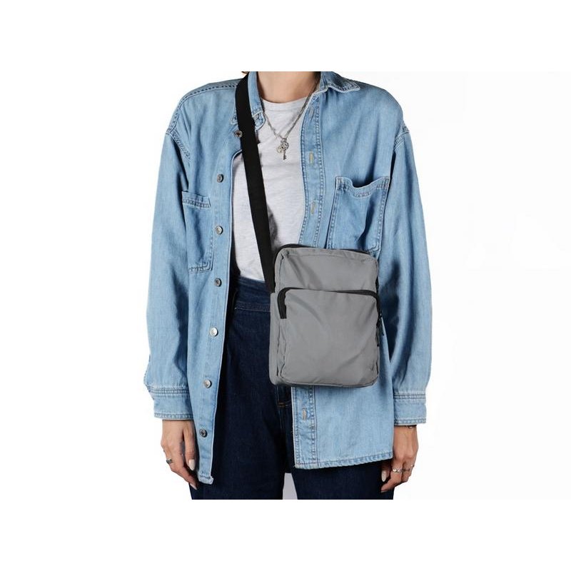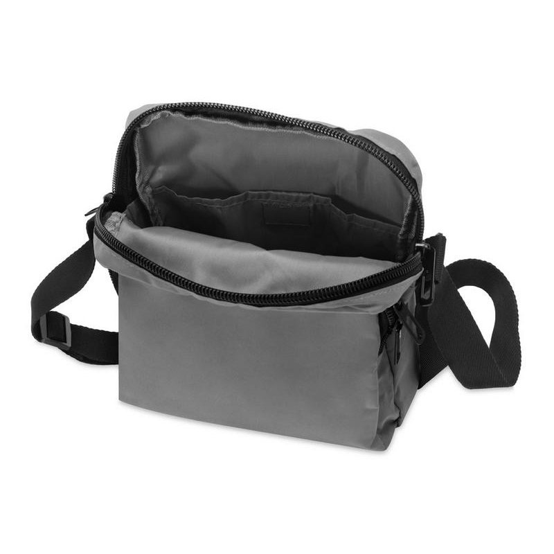 Светоотражающая сумка через плечо обеспечит дополнительную безопасность в темное время суток. Внутренний карман основного отделения на застежке-липучке предназначен для хранения ценных вещей. Наружный карман на молнии для хранения мелочей.