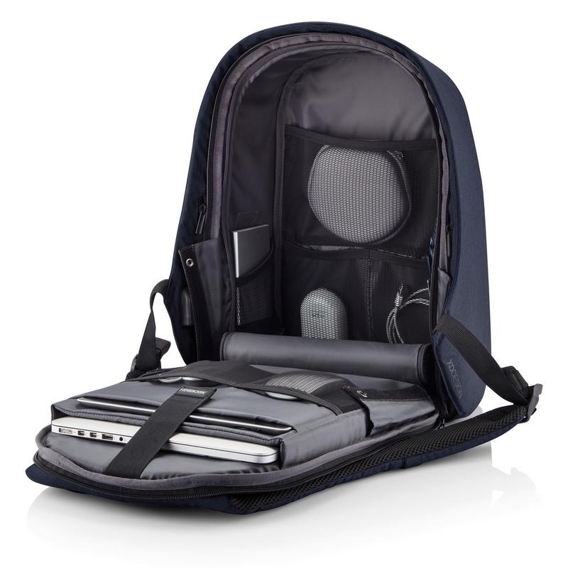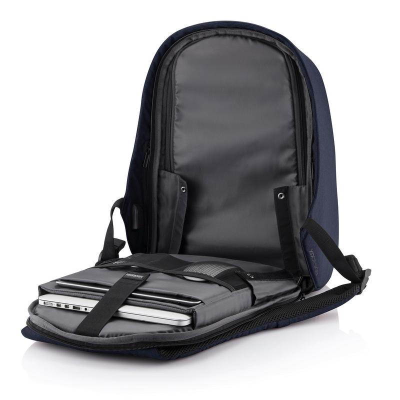 Коллекция Bobby Hero — это новое поколение антикражных рюкзаков. Новые модели подарят вам чувство безопасности, беззаботности и организованности в путешествии. Такие основные функции, как защита от порезов, скрытые молнии и потайные карманы, сохранят ваши вещи в безопасности во время ваших поездок на работу или в путешествие. Как и в предыдущих моделях в Bobby Hero интегрирован удобный USB порт для подзарядки ваших гаджетов, водоотталкивающая ткань, светоотражающие полосы и багажный ремень. Внутри предусмотрены мягкие отделения для ноутбука диагональю 15,6", для планшета диагональю до 12,9" и основное отделение для всего самого необходимого. Более того, новая модель — экологичная, она сделана из переработанных пластиковых бутылок. Зарегистрированный дизайн.