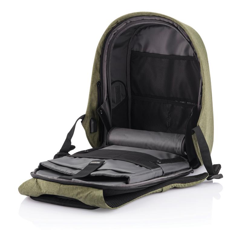 Коллекция Bobby Hero — это новое поколение антикражных рюкзаков. Новые модели подарят вам чувство безопасности, беззаботности и организованности в путешествии. Такие основные функции, как защита от порезов, скрытые молнии и потайные карманы, сохранят ваши вещи в безопасности во время ваших поездок на работу или в путешествие. Как и в предыдущих моделях в Bobby Hero интегрирован удобный USB порт для подзарядки ваших гаджетов, водоотталкивающая ткань, светоотражающие полосы и багажный ремень. Внутри предусмотрены мягкие отделения для ноутбука диагональю 15,6", для планшета диагональю до 12,9" и основное отделение для всего самого необходимого. Более того, новая модель — экологичная, она сделана из переработанных пластиковых бутылок. Зарегистрированный дизайн.