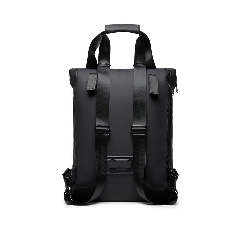 Оригинальное сочетание практичности и стиля — сумка-рюкзак из коллекции Baltimore. Он изготовлен из мягкого водоотталкивающего полиуретана с покрытием soft-touch. Рюкзак можно превратить в сумку или прикрепить к раме велосипеда. Большое внутреннее отделение закрывается на прочную молнию, внутри также есть карман с мягкой подкладкой — для ноутбука или планшета. Снаружи рюкзак дополнительно фиксируется застежками. Расстегивать их, чтобы достать электронику, вам не придется: боковая молния позволит добраться до ноутбука напрямую.