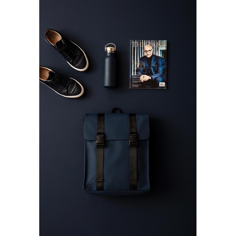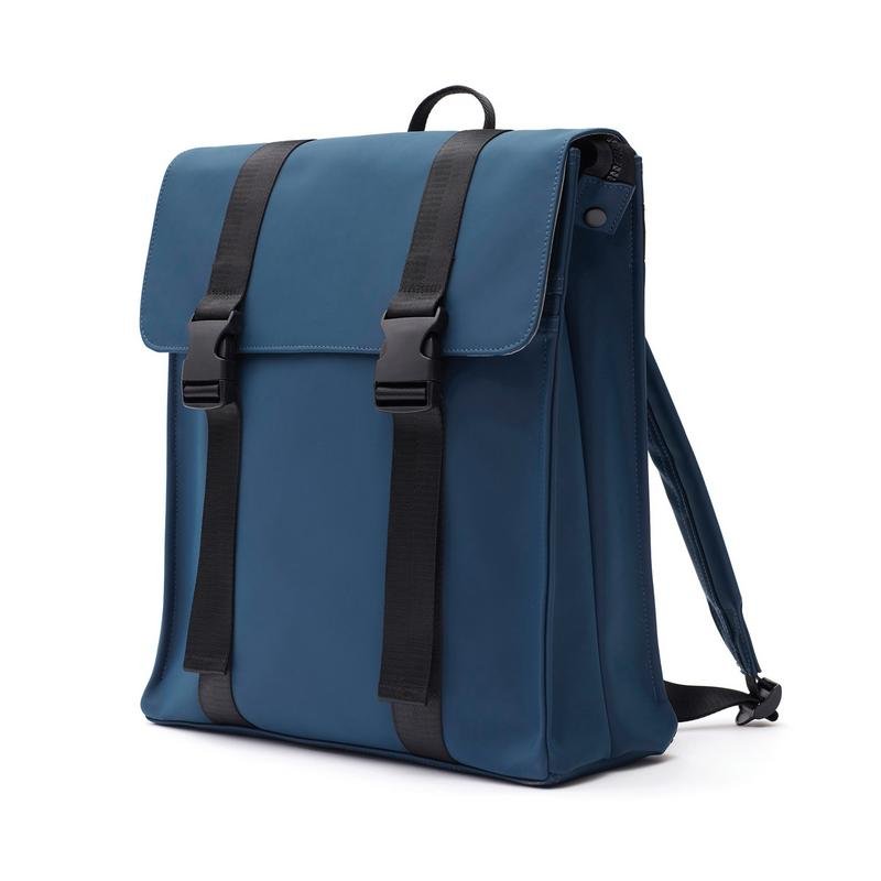 Рюкзак изготовлен из приятного на ощупь водоотталкивающего полиуретана с покрытием soft-touch. Он не боится дождя, брызг и легко очищается. У рюкзака два внутренних отделения: основное и дополнительное, для ноутбука или планшета, с мягкой подкладкой и ремнем на застежке-липучке. Телефон, наушники или другие мелочи можно расположить в трех карманах, один из которых — внутри. Все карманы застегиваются на молнии. Снаружи рюкзак дополнительно фиксируется застежками. Лямки, также изготовленные из полиуретана, можно отрегулировать по длине.