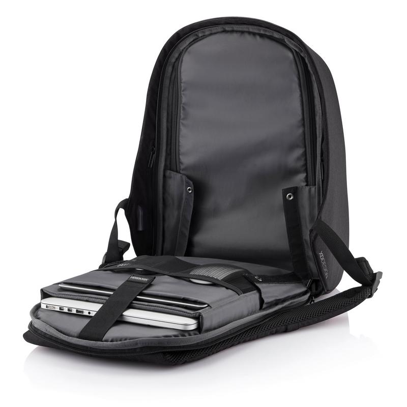 Коллекция Bobby Hero — это новое поколение антикражных рюкзаков. Новые модели подарят вам чувство безопасности, беззаботности и организованности в путешествии. Такие основные функции, как защита от порезов, скрытые молнии и потайные карманы, сохранят ваши вещи в безопасности во время ваших поездок на работу или в путешествие. Как и в предыдущих моделях в Bobby Hero интегрирован удобный USB порт для подзарядки ваших гаджетов, водоотталкивающая ткань, светоотражающие полосы и багажный ремень. Внутри предусмотрены мягкие отделения для ноутбука диагональю 15,6", для планшета диагональю до 12,9" и основное отделение для всего самого необходимого. Более того, новая модель — экологичная, она сделана из переработанных пластиковых бутылок. Зарегистрированный дизайн.