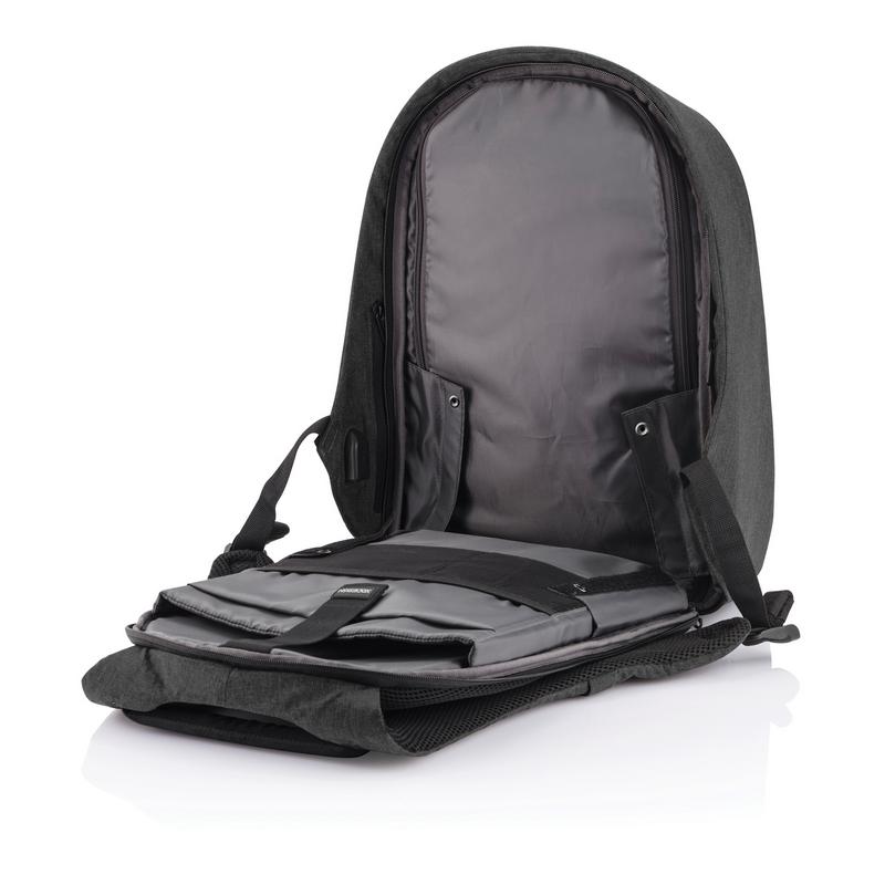 Коллекция Bobby Hero — это новое поколение антикражных рюкзаков. Новые модели подарят вам чувство безопасности, беззаботности и организованности в путешествии. Такие основные функции, как защита от порезов, скрытые молнии и потайные карманы, сохранят ваши вещи в безопасности во время ваших поездок на работу или в путешествие. Как и в предыдущих моделях в Bobby Hero интегрирован удобный USB порт для подзарядки ваших гаджетов, водоотталкивающая ткань, светоотражающие полосы и багажный ремень. Внутри предусмотрены мягкие отделения для ноутбука диагональю 17", для планшета диагональю до 12,9" и основное отделение для всего самого необходимого. Более того, новая модель — экологичная, она сделана из переработанных пластиковых бутылок. Зарегистрированный дизайн.