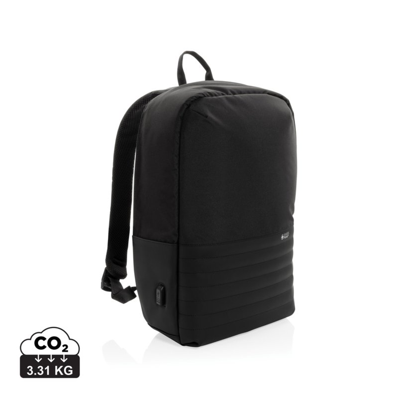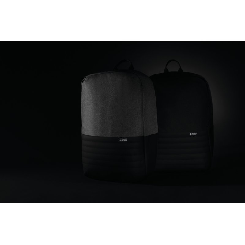 Антикражный рюкзак для ноутбука 15,6’’ от Swiss Peak — стильная и максимально защищенная модель для ежедневного использования. Скрытые застежки-молнии и секретные карманы сохранят все ваши вещи в безопасности. Рюкзак достаточно объемный, чтобы вместить все, что вы захотите взять с собой на работу или в поездку. Внутри большое отделение с двумя мягкими карманами — для ноутбука диагональю до 15,6’’ и планшета. Карманы для паспорта, кошелька и банковских карт оснащены защитой RFID, которая не позволит злоумышленникам считать данные. На спинке располагается кармашек на молнии, куда можно положить телефон или мелочи, необходимые под рукой. Дополнительное удобство обеспечивает встроенный USB-порт: вы сможете зарядить телефон даже в поездке. Антикражный рюкзак изготовлен из переработанных пластиковых бутылок и не содержит ПВХ. Для создания каждого рюкзака мы использовали 20,8 поллитровых пластиковых бутылок. Сертифицировано AWARE™. Наличие индикаторных частиц AWARE™ подтверждает, что мы действительно используем переработанные материалы. 2% с продажи каждой вещи, отмеченной сертификатом AWARE™, мы перечисляем в поддержку всемирной организации Water.org.