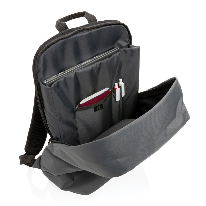 Идеальный спутник, куда бы вы ни отправились: на работу, на учебу или в небольшую поездку. Антикражный рюкзак Impact легкий и прочный. Вмещает ноутбук до 15,6". Внутри есть карман с RFID-защитой, снаружи – багажный ремень. Материал изделия: переработанный полиэстер 300D. Подкладка: переработанный полиэстер 150D. При производстве каждого рюкзака мы сэкономили 11,9 л воды и переработали 19,9 пластиковых бутылок объемом 0,5 л. 2% с продаж всех изделий, содержащих индикаторные частицы AWARE™, будут перечислены в поддержку всемирной благотворительной организации Water.org. Не содержит ПВХ.