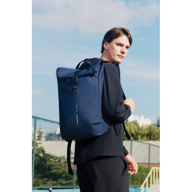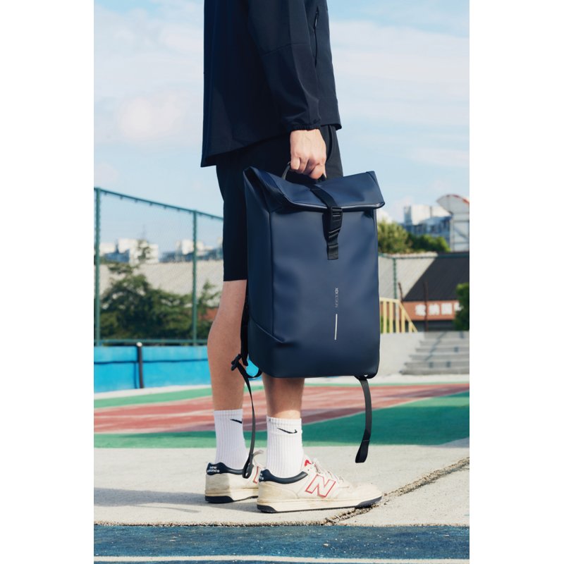 Антикражный водонепроницаемый рюкзак Urban Flap-Top — идеальное решение для города. Минималистичный дизайн и необычная трапециевидная форма одинаково хорошо подойдут для строгих, деловых, а также расслабленных и спортивных образов. Основное отделение, закрывающееся на молнию, открывается в форме буквы L. Благодаря этому складывать и вытаскивать вещи становится проще и легче. В рюкзаке есть отделение для ноутбука 16’’ — мягкая подкладка защитит ваш гаджет от царапин и повреждений. Защищен будет не только ноутбук: рюкзак может похвастаться антикражной защитой. Язычок молнии оснащен функцией самоблокировки, которая не позволит постороннему незаметно ее расстегнуть. Кроме того, верхняя часть рюкзака выполняет роль клапана, и чтобы полностью расстегнуть молнию, понадобится сначала справиться с ним. Как и у всех рюкзаков XD Design, здесь есть дополнительный карман на спинке — для ценных вещей, телефона и банковских карт. Сбоку располагается большой карман для бутылки с водой, закрывающийся на молнию. Прочный и стильный рюкзак изготовлен из переработанных пластиковых бутылок и полиуретана. Эти материалы отличаются водоотталкивающими свойствами — это значит, что ваши вещи останутся сухими во время дождя и снега. Общий объем рюкзака — 23 литра. Сертифицировано AWARE™. Наличие индикаторных частиц AWARE™ подтверждает, что мы действительно используем переработанные материалы. 2% с продажи каждой вещи, отмеченной сертификатом AWARE™, мы перечисляем в поддержку всемирной организации Water.org. Зарегистрированный дизайн®