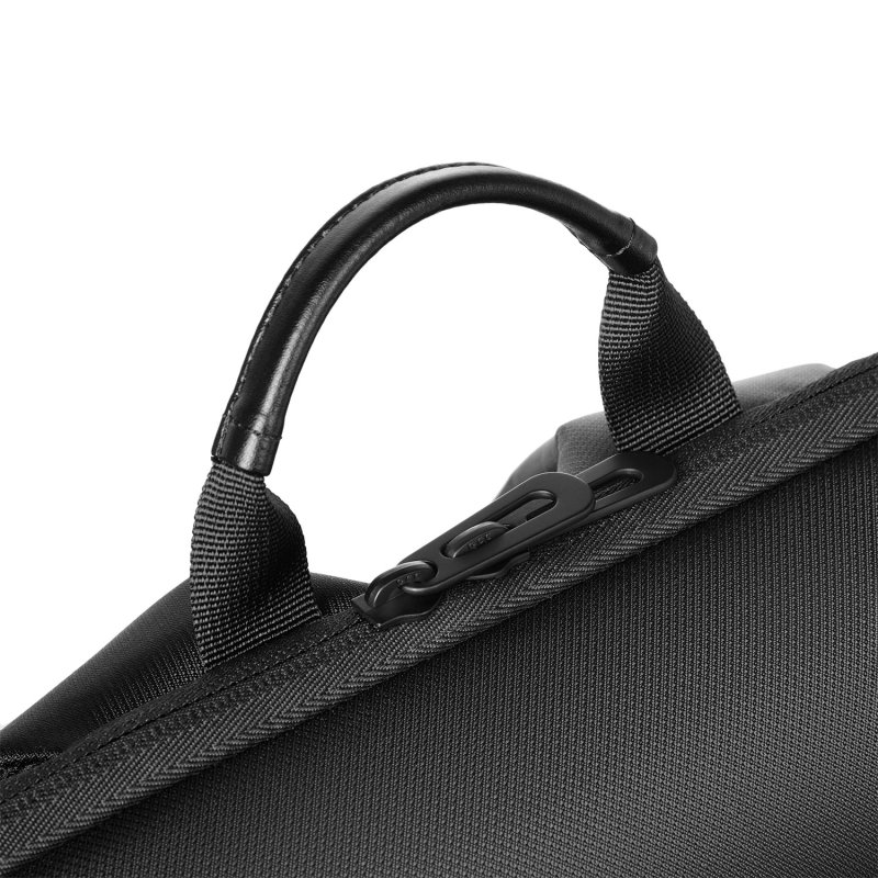 Ноутбук разместится в глубоком кармане внутри основного отделения рюкзака, также предусмотрены два небольших кармашка для мелочей. Основное отделение закрывается на двойную молнию. С лицевой стороны небольшой карман на молнии. Короткая верхняя ручка для переноски изделия в руках. Лямки — широкие, регулируемые по длине. Они хорошо облегают плечи и равномерно распределяют нагрузку.