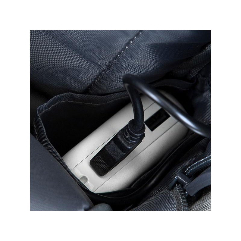 • На боковой стороне рюкзака имеется USB-порт для подключения портативного внешнего аккумулятора к смартфону.