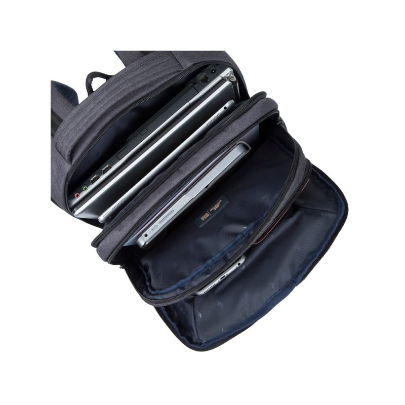 • Основное отделение для ноутбука с вертикальной загрузкой имеет дополнительный внутренний карман для планшета до 10.1.