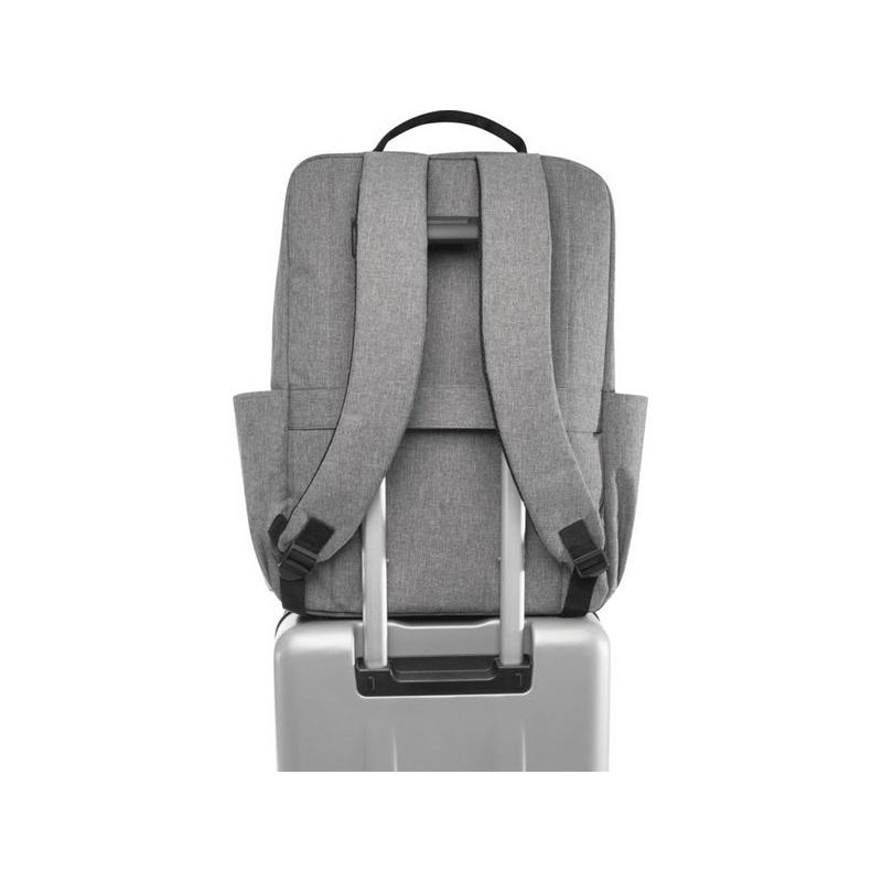 Рюкзак Libra изготовлен из переработанного полиэстера, сертифицированного согласно GRS, и подкладки из RPET. Он оснащен отделением для ноутбука диагональю 15 дюймов с дополнительным мягким карманом для планшета и карманами-органайзерами внутри. Снаружи также имеется несколько карманов, мягкие регулируемые плечевые ремни и ремень для крепления для ручки чемодана сзади. Выдерживает вес до 10 кг. GRS certified recycled polyester.