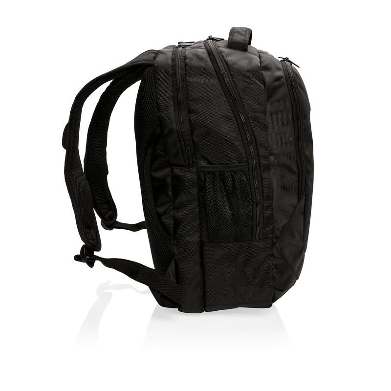 Замена артикула P742.011. Рюкзак для ноутбука Swiss Peak из полиэстера 1680D сохраняет уникальный баланс между удобством и защитой во время активного отдыха. В нем есть все необходимые карманы, начиная c уплотненного отделения для ноутбука и кармана для iPad и заканчивая держателями для письменных принадлежностей и карманами с сеткой. На наплечном ремне находится чехол для наушников и карман для солнцезащитных очков. И даже есть чехол от дождя, который не позволит рюкзаку намокнуть. Зарегистрированный дизайн®.